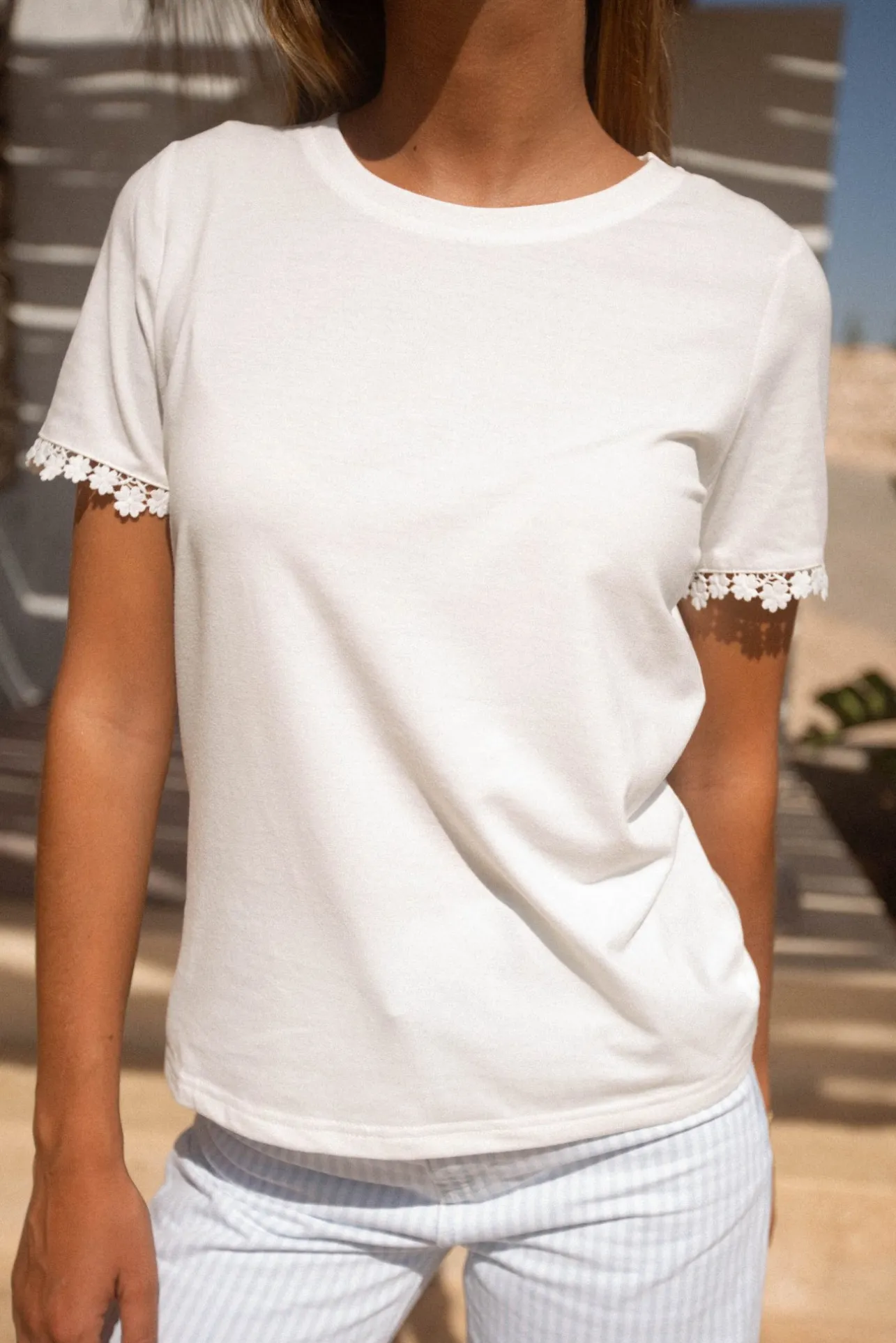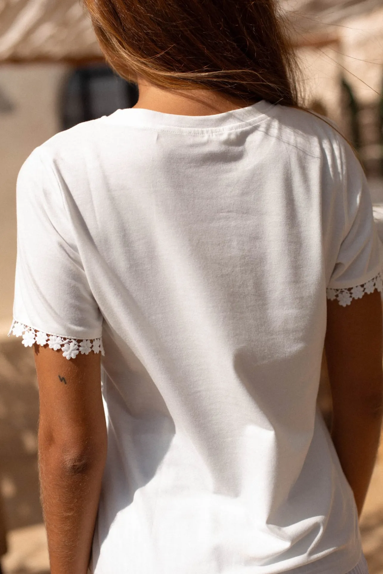 – T-shirt manches courtes– Col rond– Broderie sur les manches– Couleur : blancLe mannequin mesur…