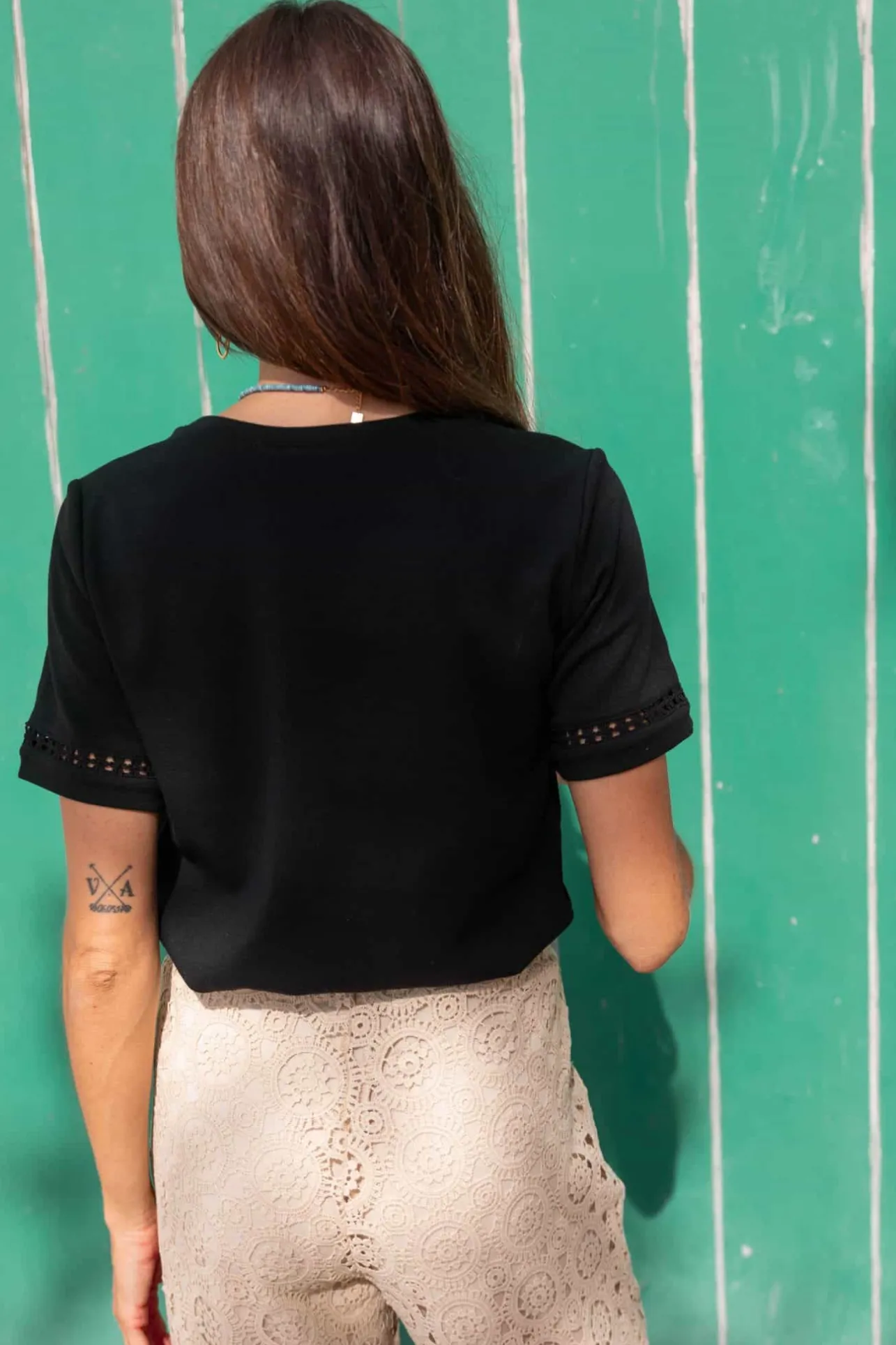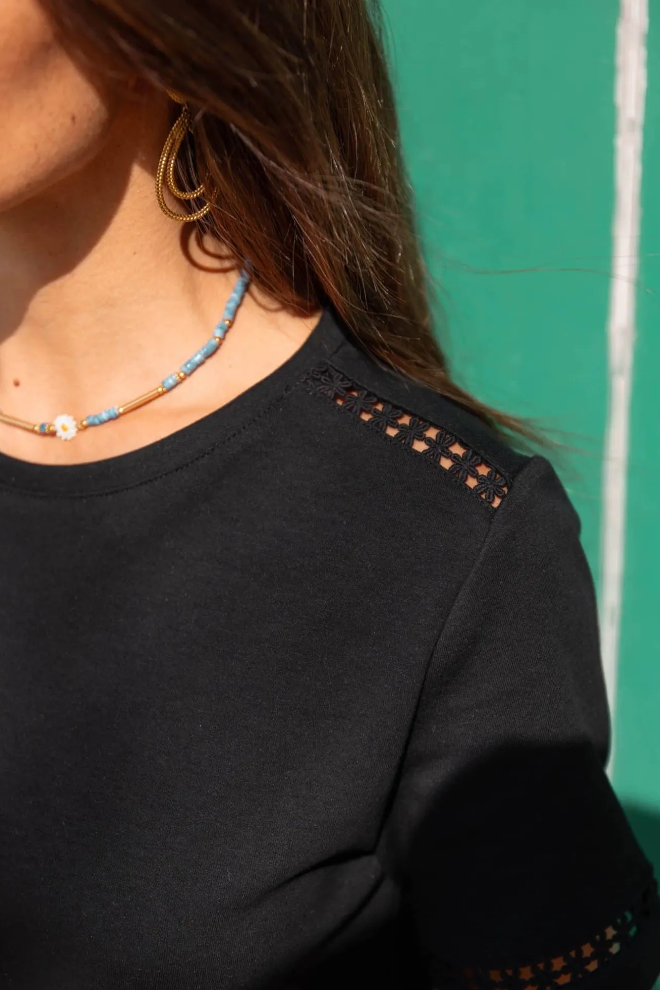 – Taille unique : convient pour un S M L– Manches courtes– Broderies fleuries– Couleur : noirLe …