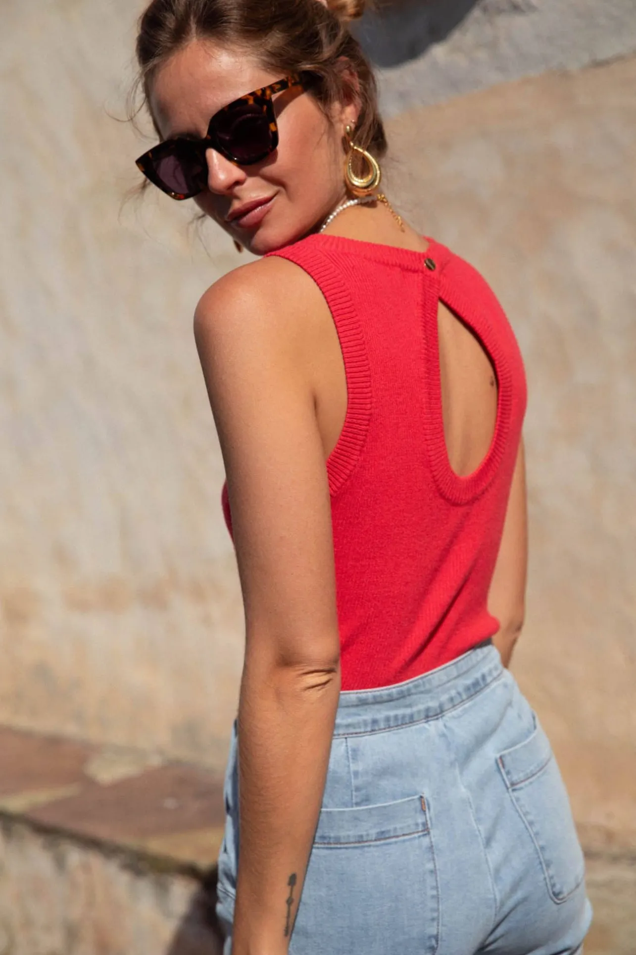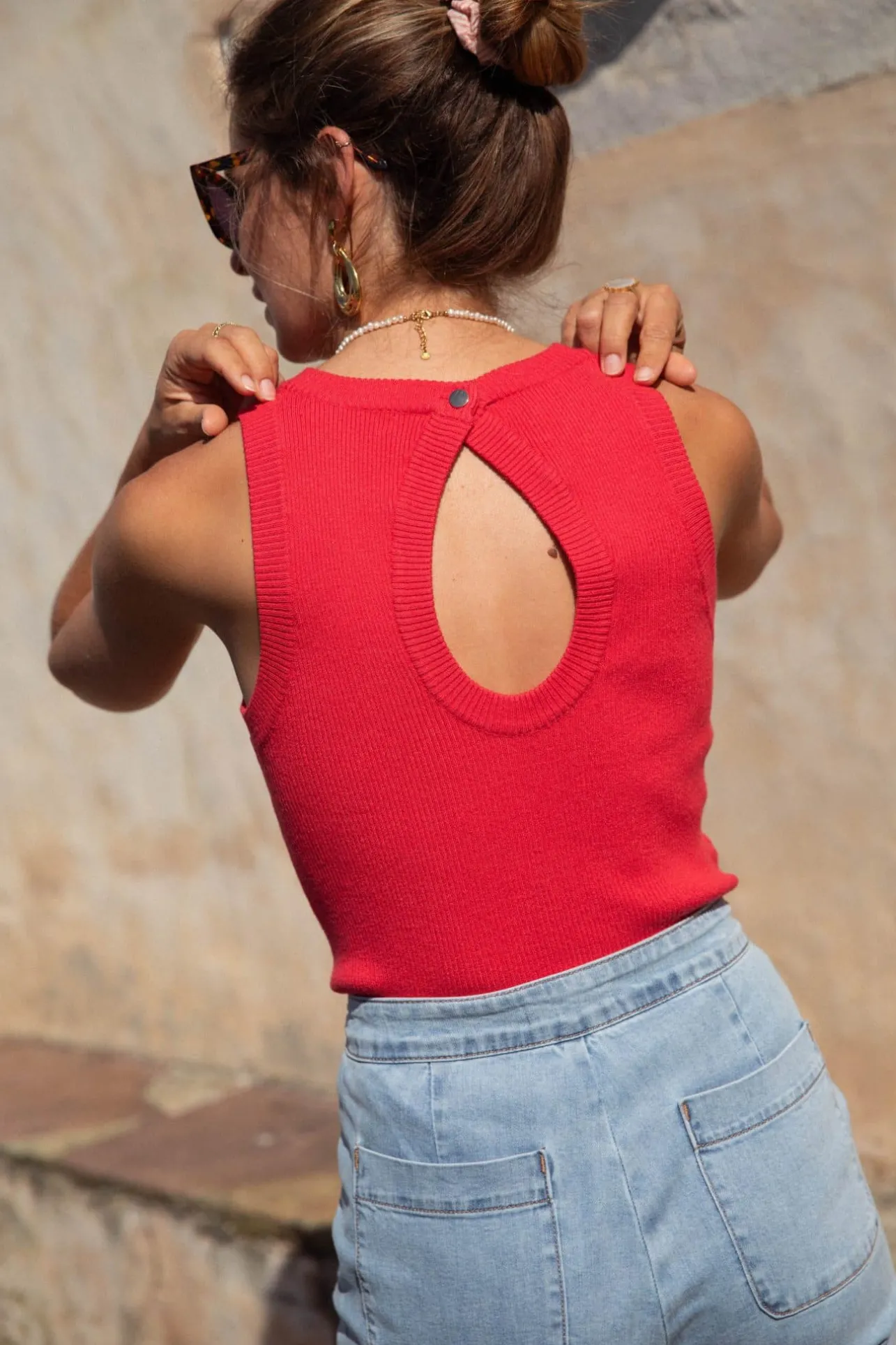 – Top col rond– Matière élastique– Dos nu forme goutte– Couleur : rougeLe mannequin mesure 1m7…
