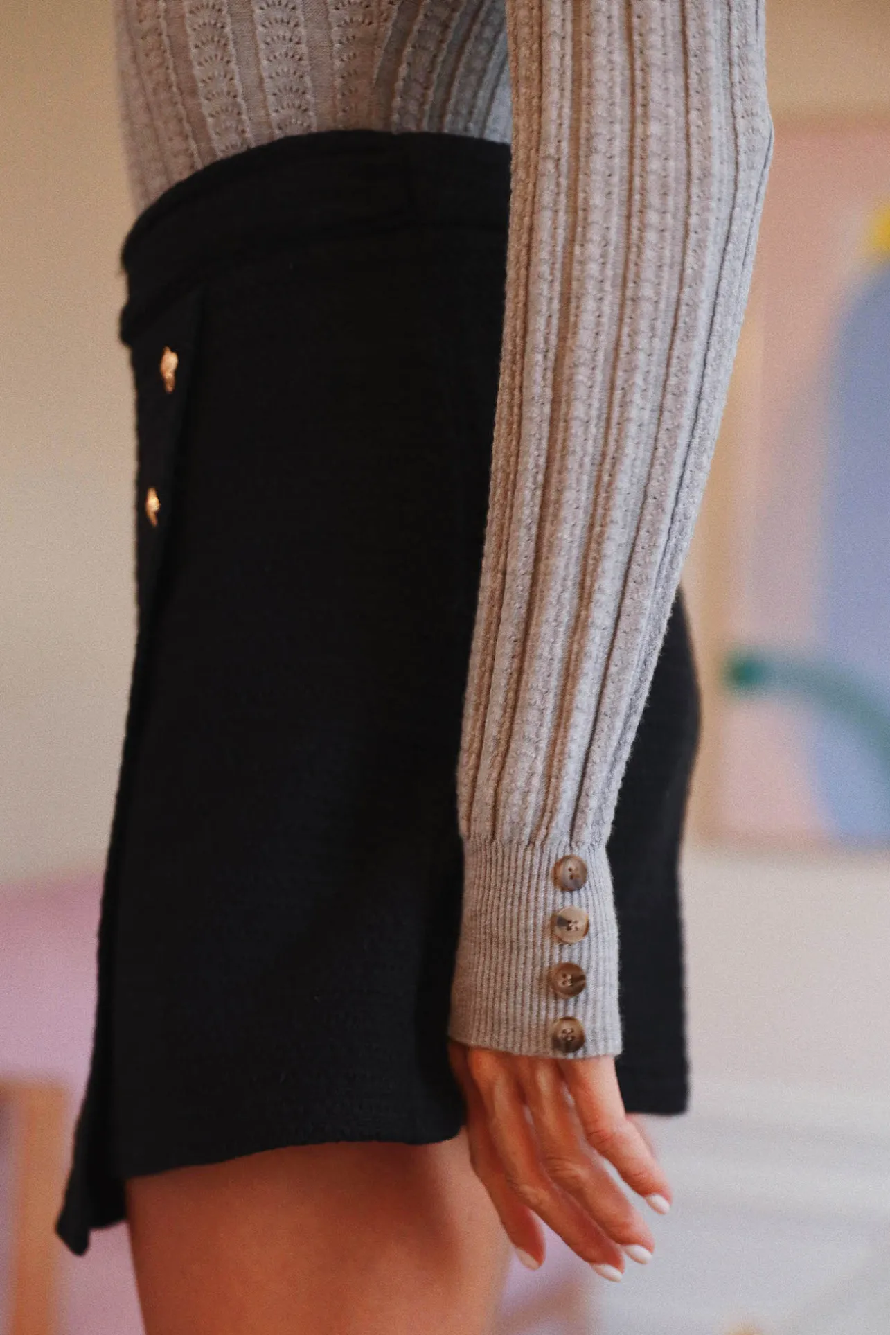 – Top col V– Tout doux– Boutons sur le bout des manches– Couleur : grisLe mannequin mesure 1m70 …