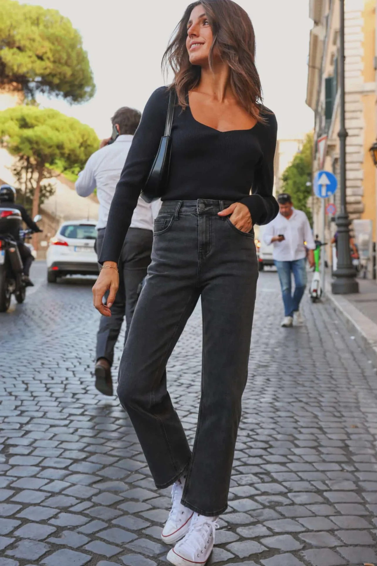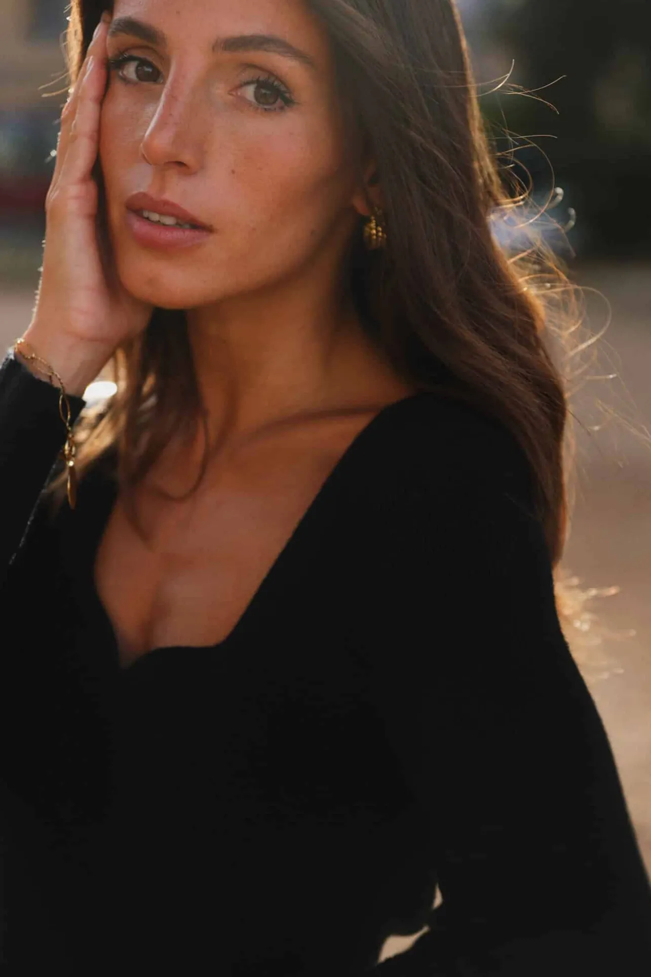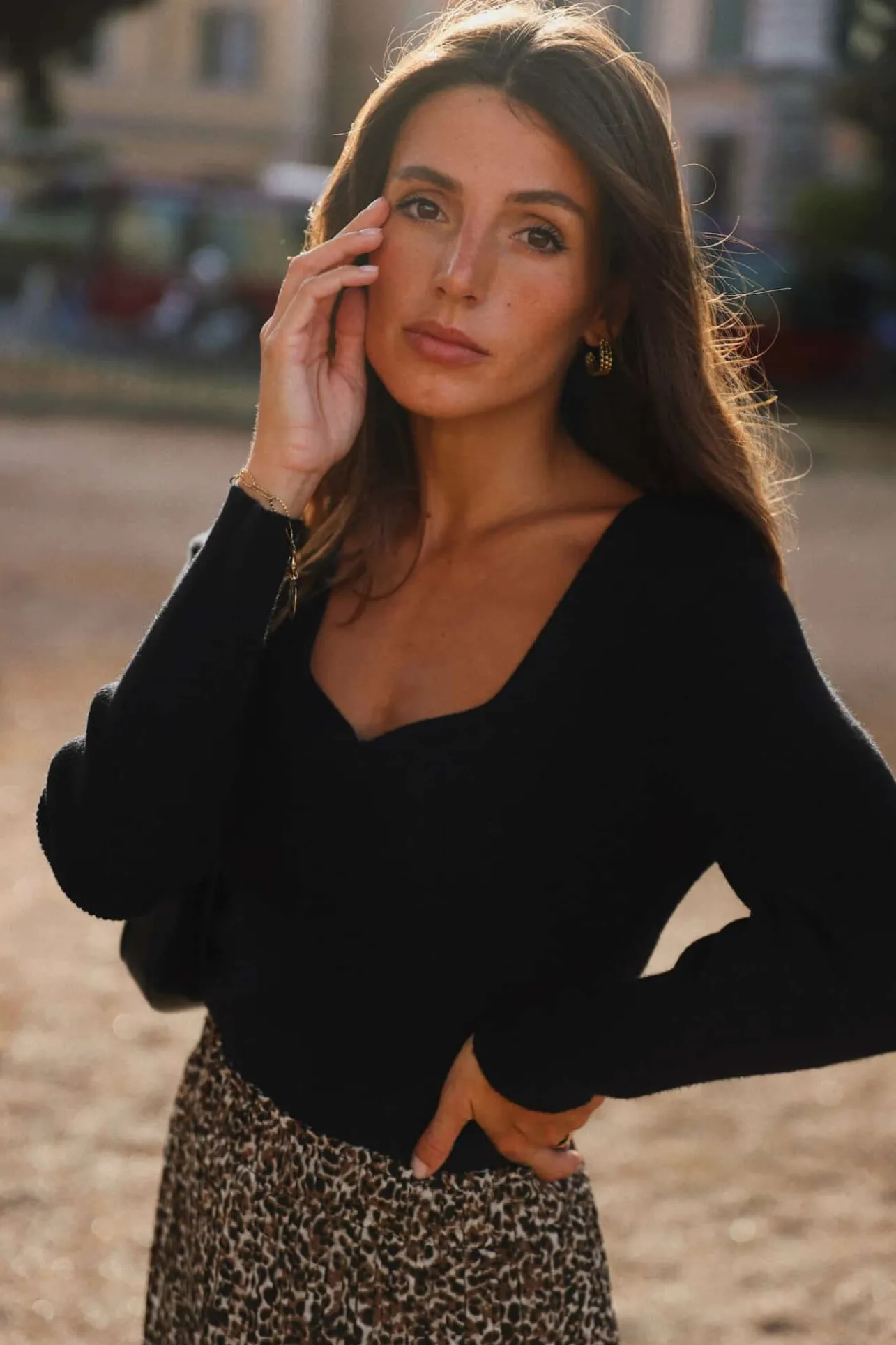– Top manches longues– Décolleté en V– Couleur : noirLe mannequin mesure 1m70 et porte une taille SM