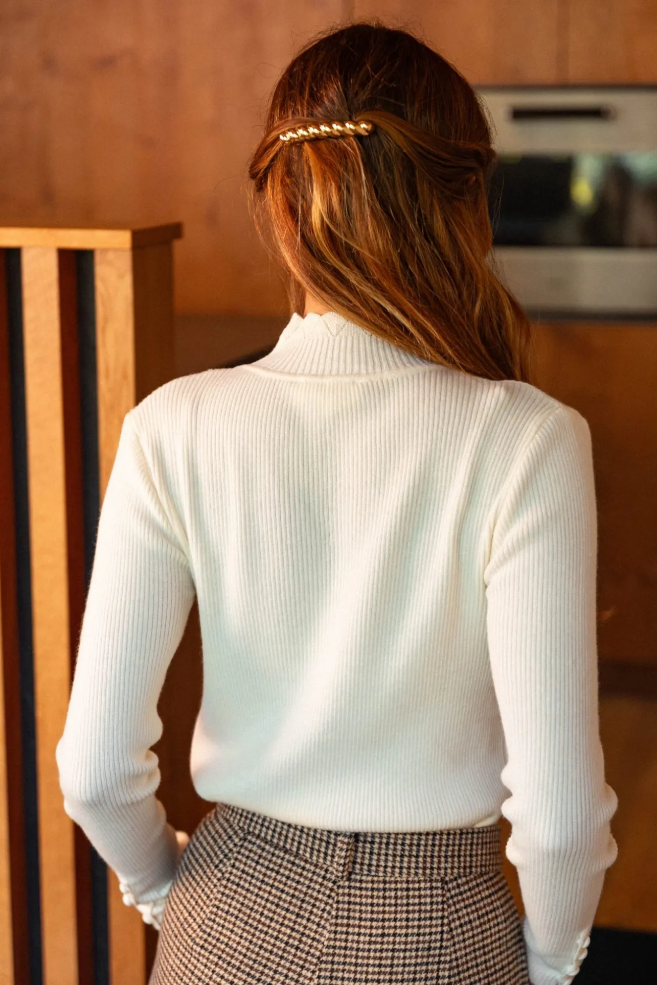 – Top col montant– Détail de dentelle sur le col– Boutons sur le bout des manches– Couleur : cr…