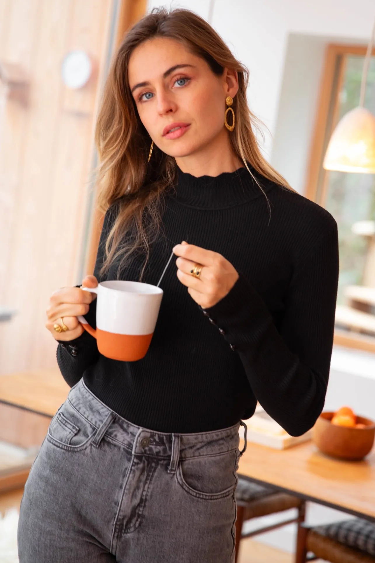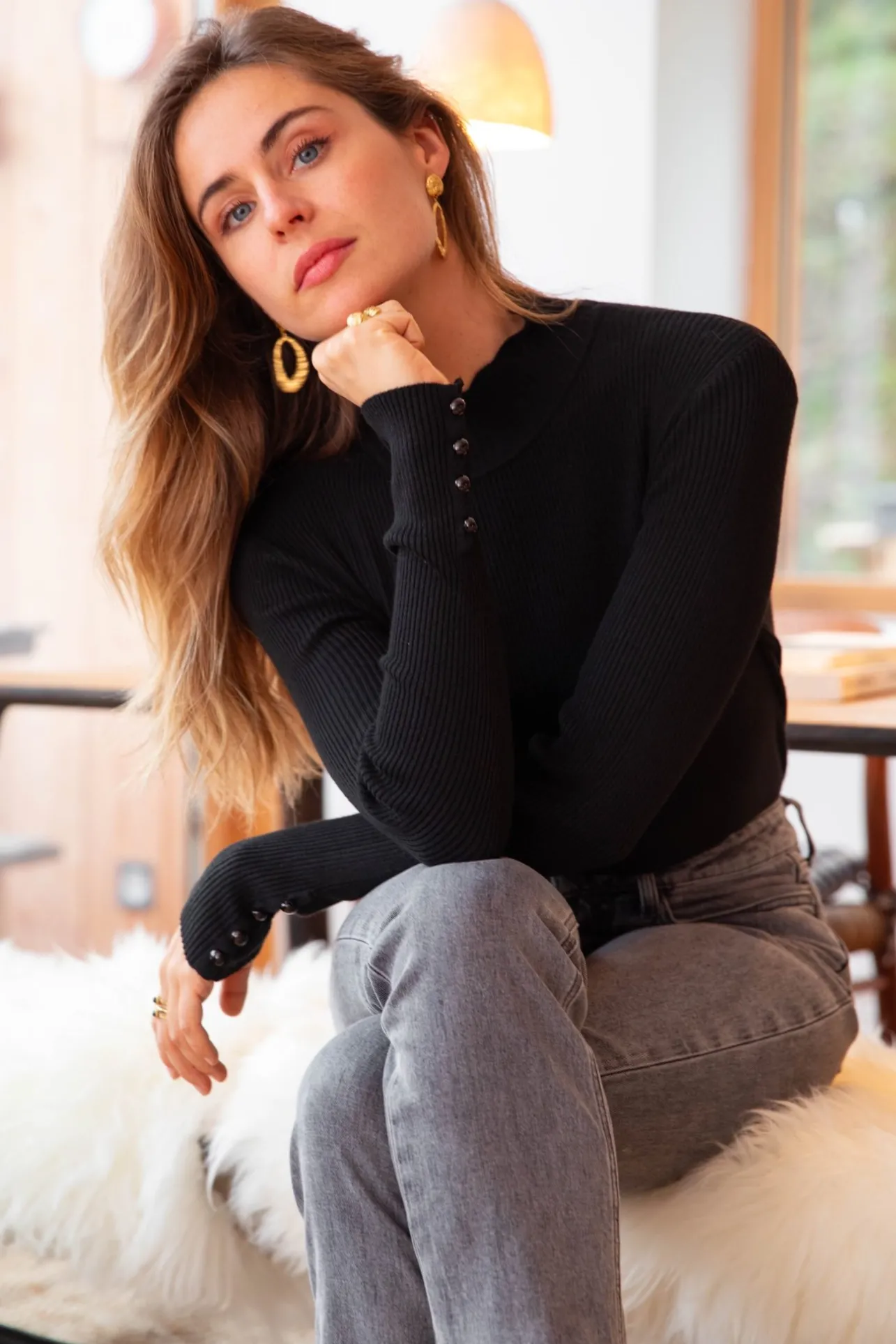 – Top col montant– Détail de dentelle sur le col– Boutons sur le bout des manches– Couleur : no…