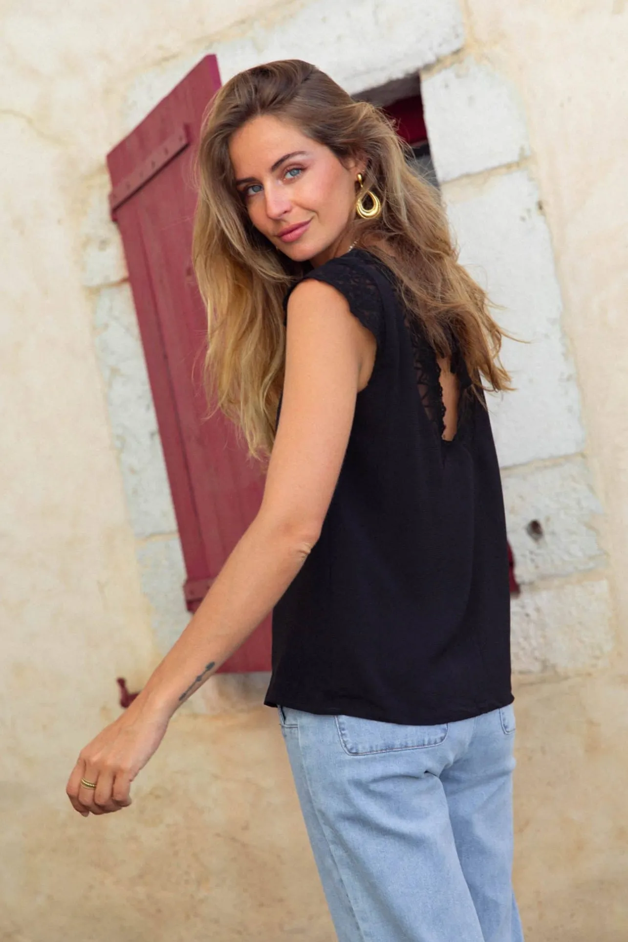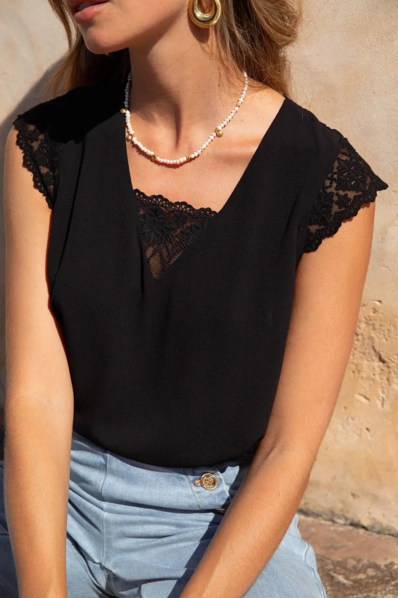 – Top manches courtes– Détails dentelle– Dos nu– Doublé– Couleur : noirLe mannequin mesu…
