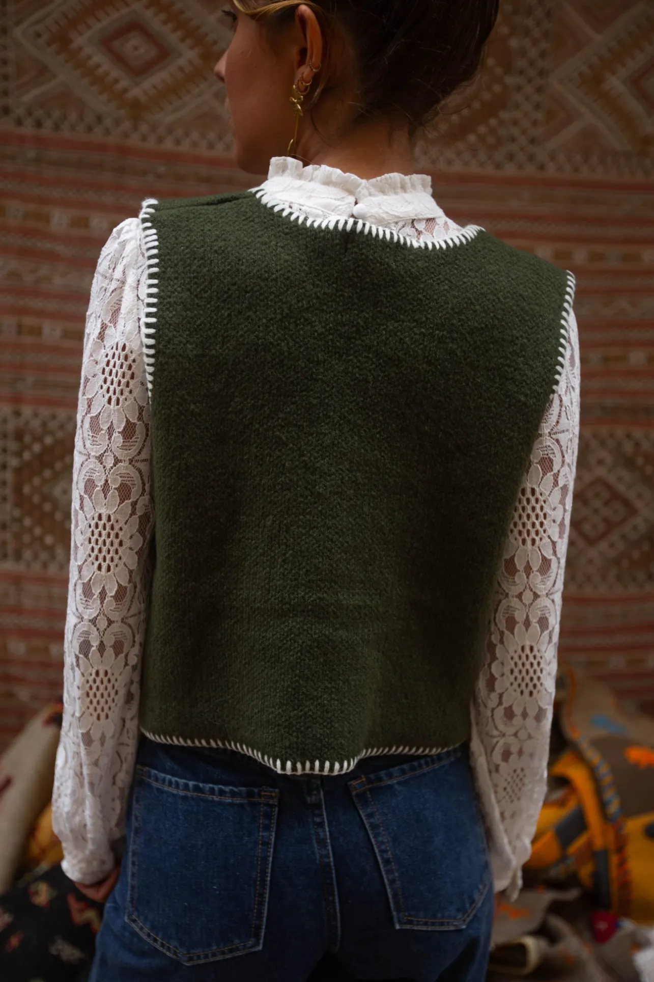– Gilet sans manche– Col V– Broderies décoratives– Couleur : kaki et blancLe mannequin mesure 1…