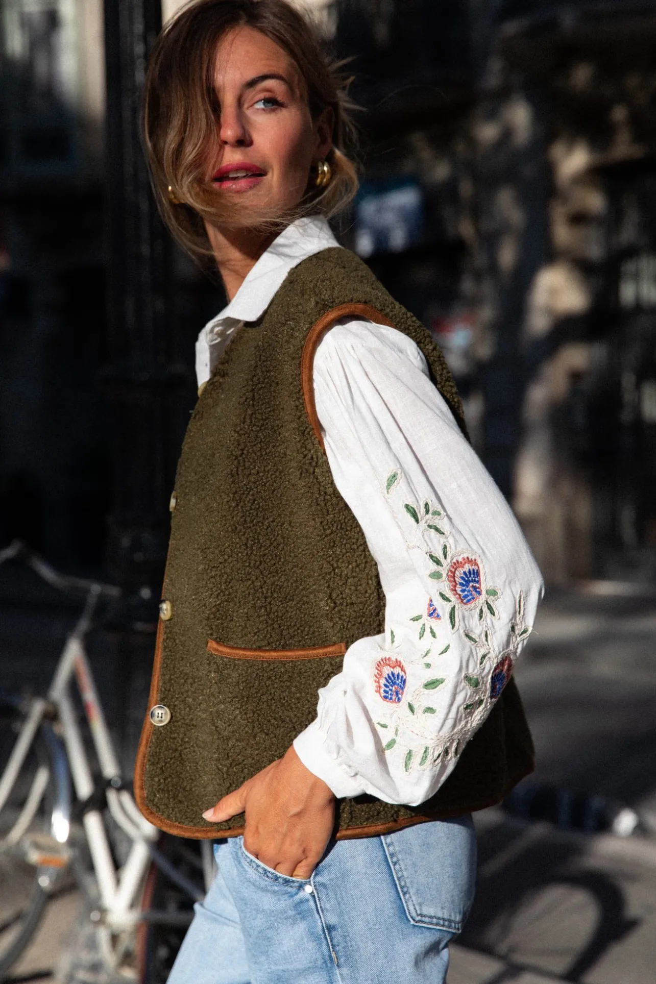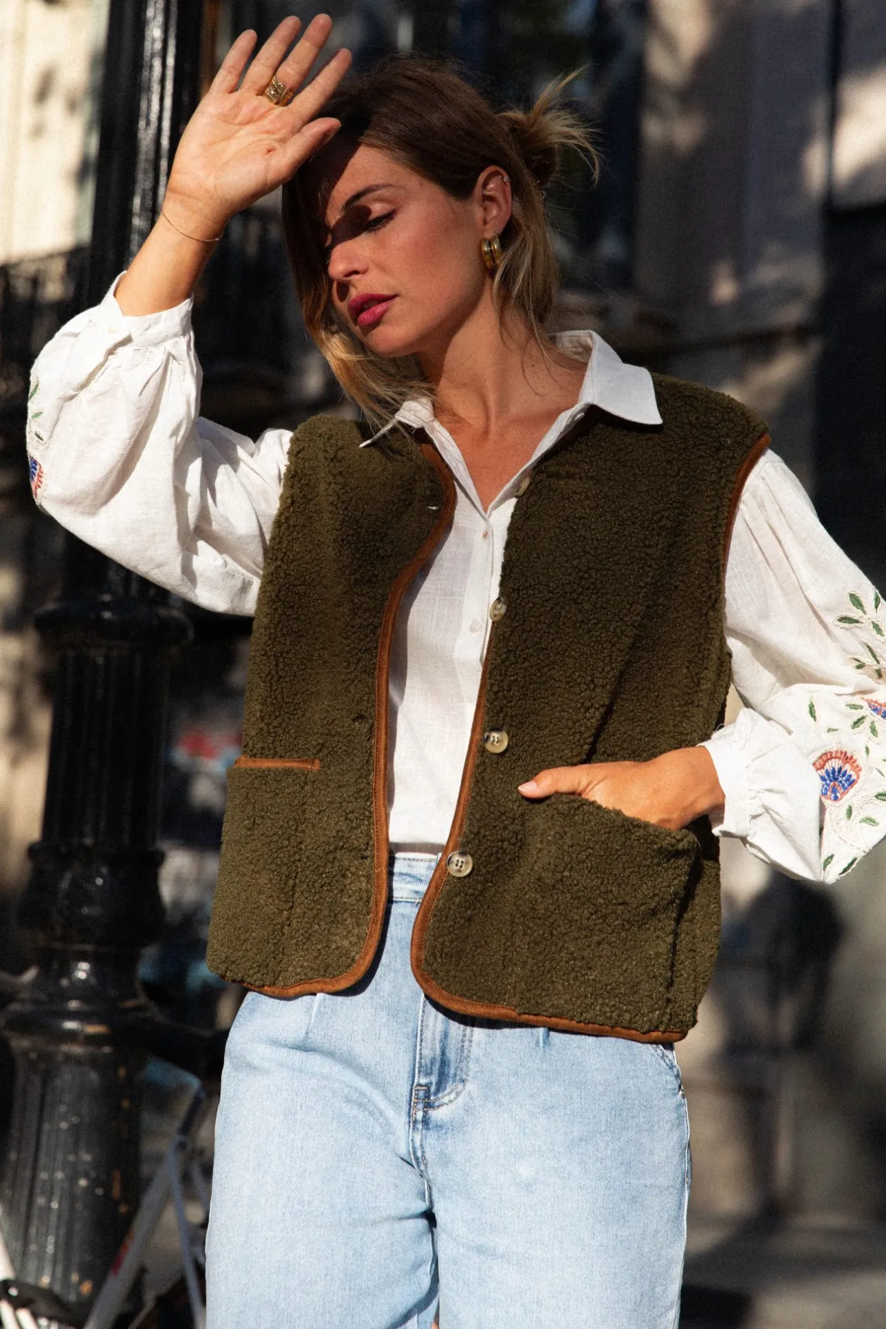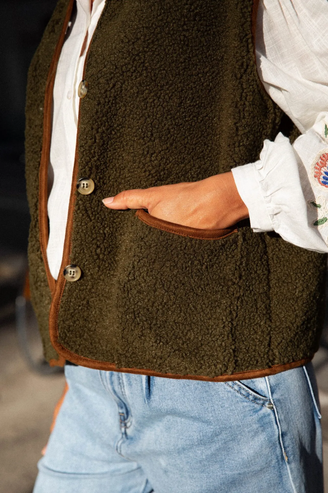 – Gilet sans manche– Fermeture par boutons– Deux poches– Détails boutons sur les côtés– Cou…