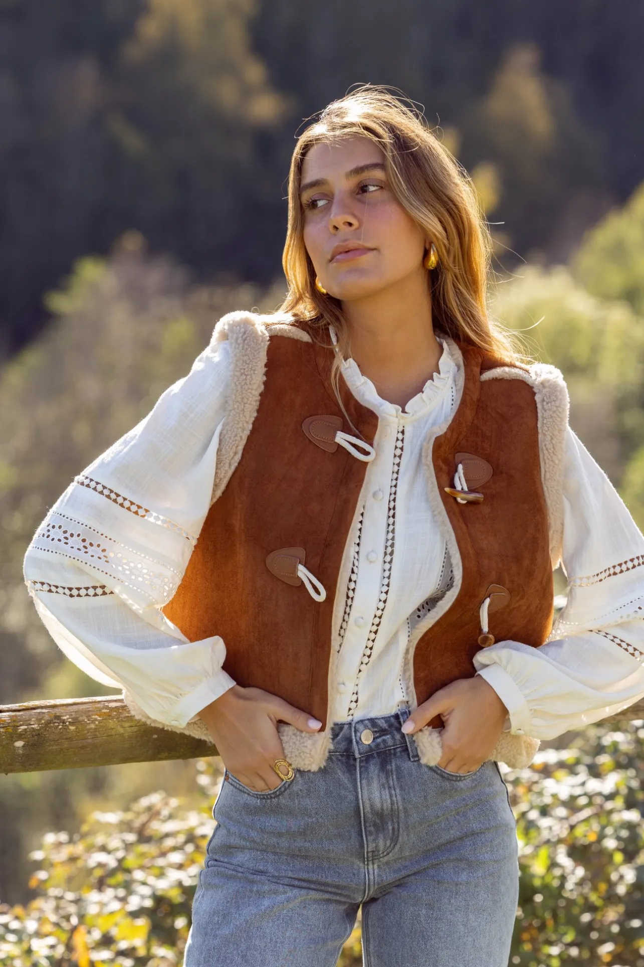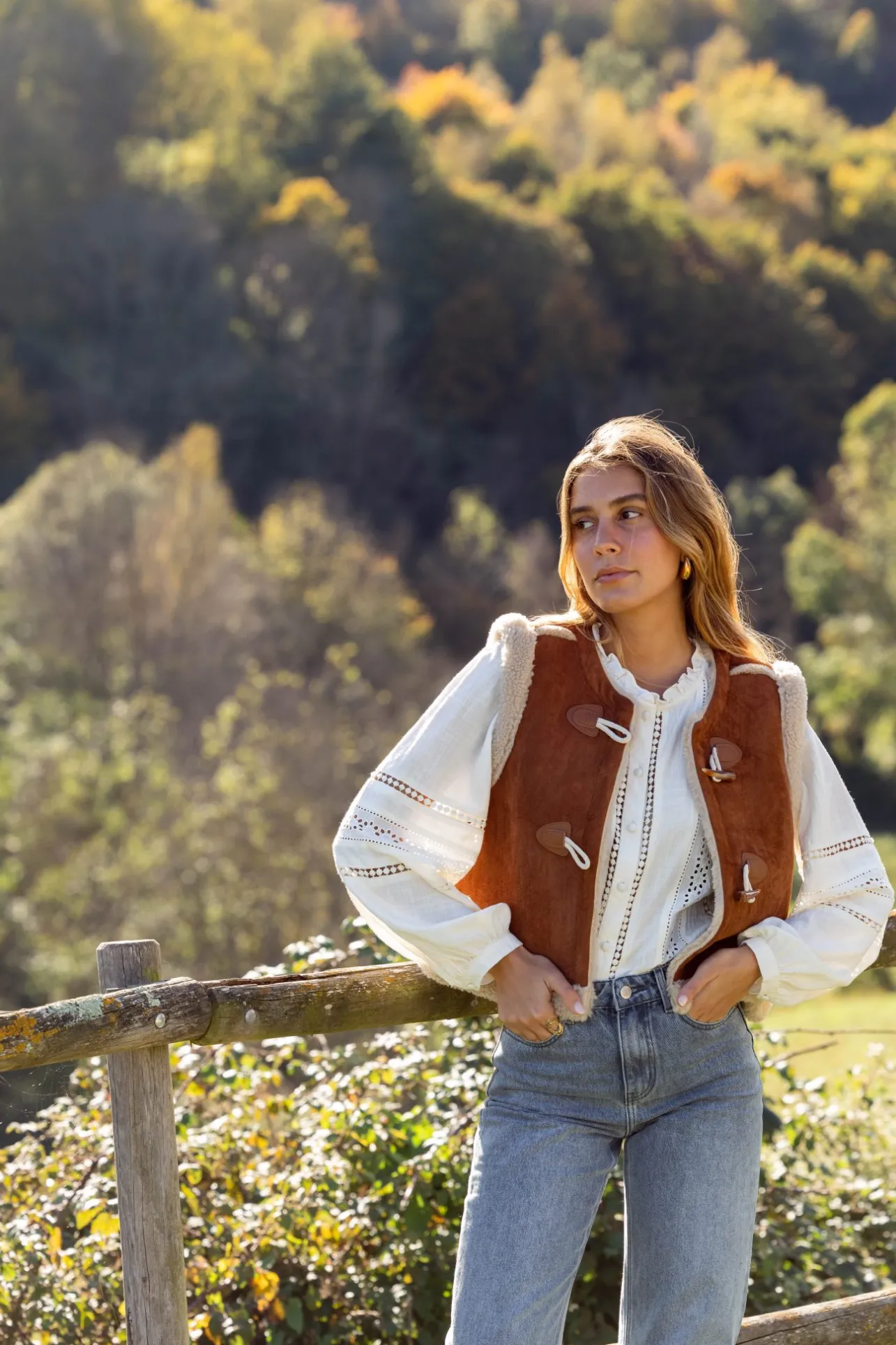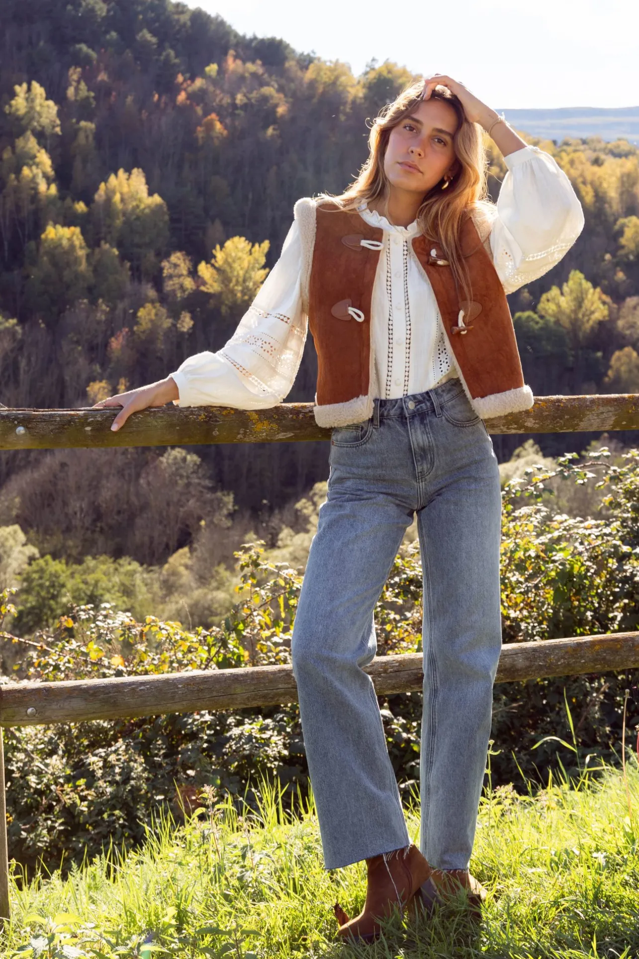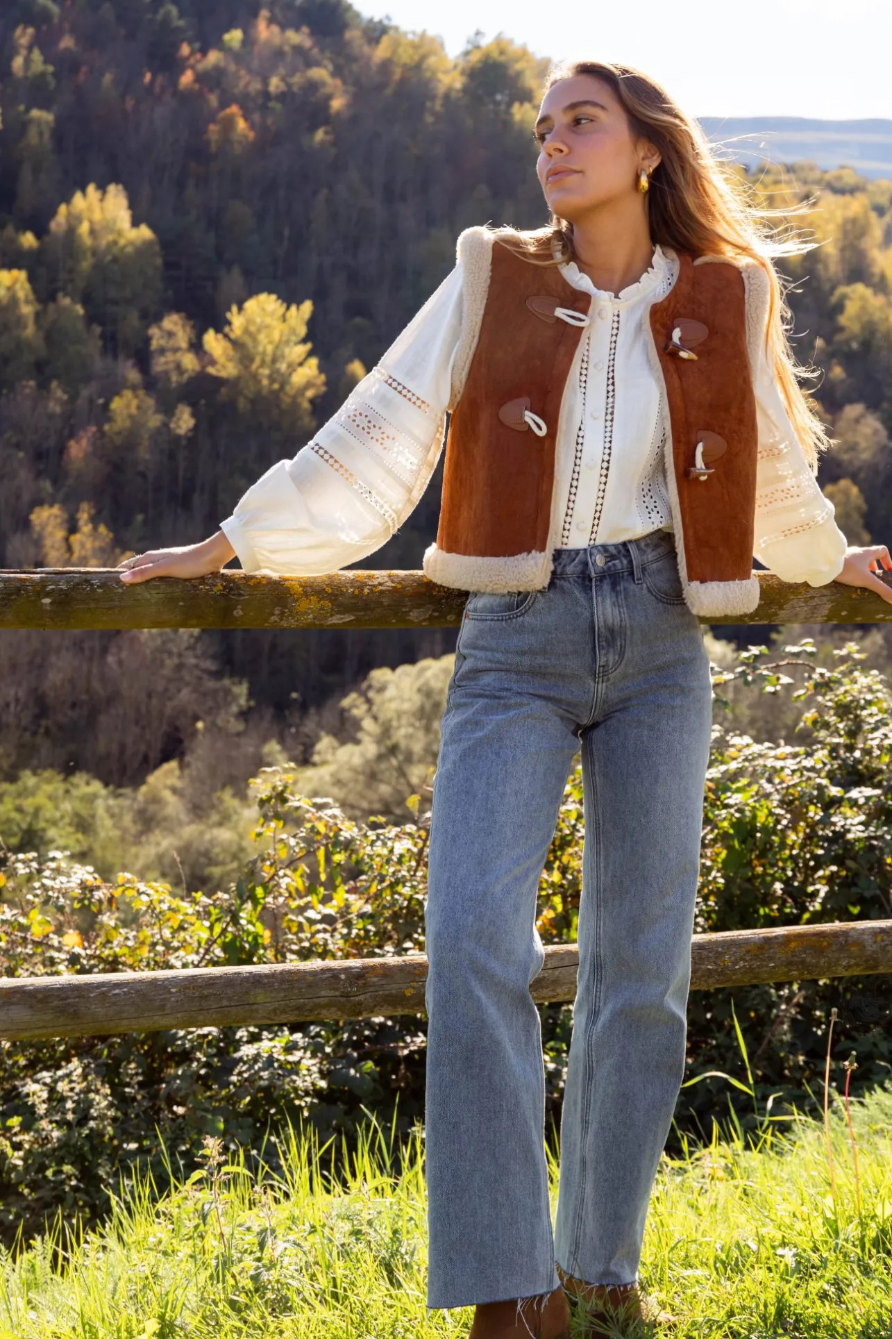 – Gilet sans manche– Fermeture par boutons– Intérieur effet mouton– Couleur : camel et beigeLe …