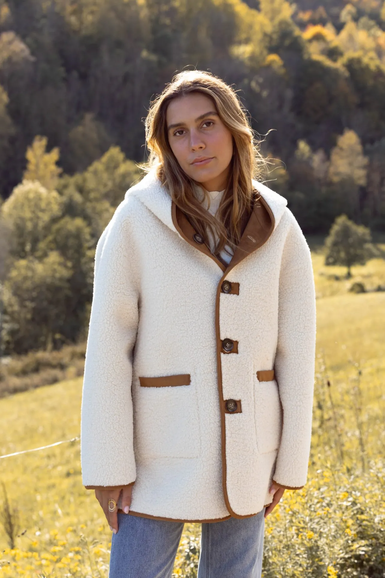 – Manteau réversible effet mouton– Fermeture par boutons sur le devant– Deux poches à l’avant&…