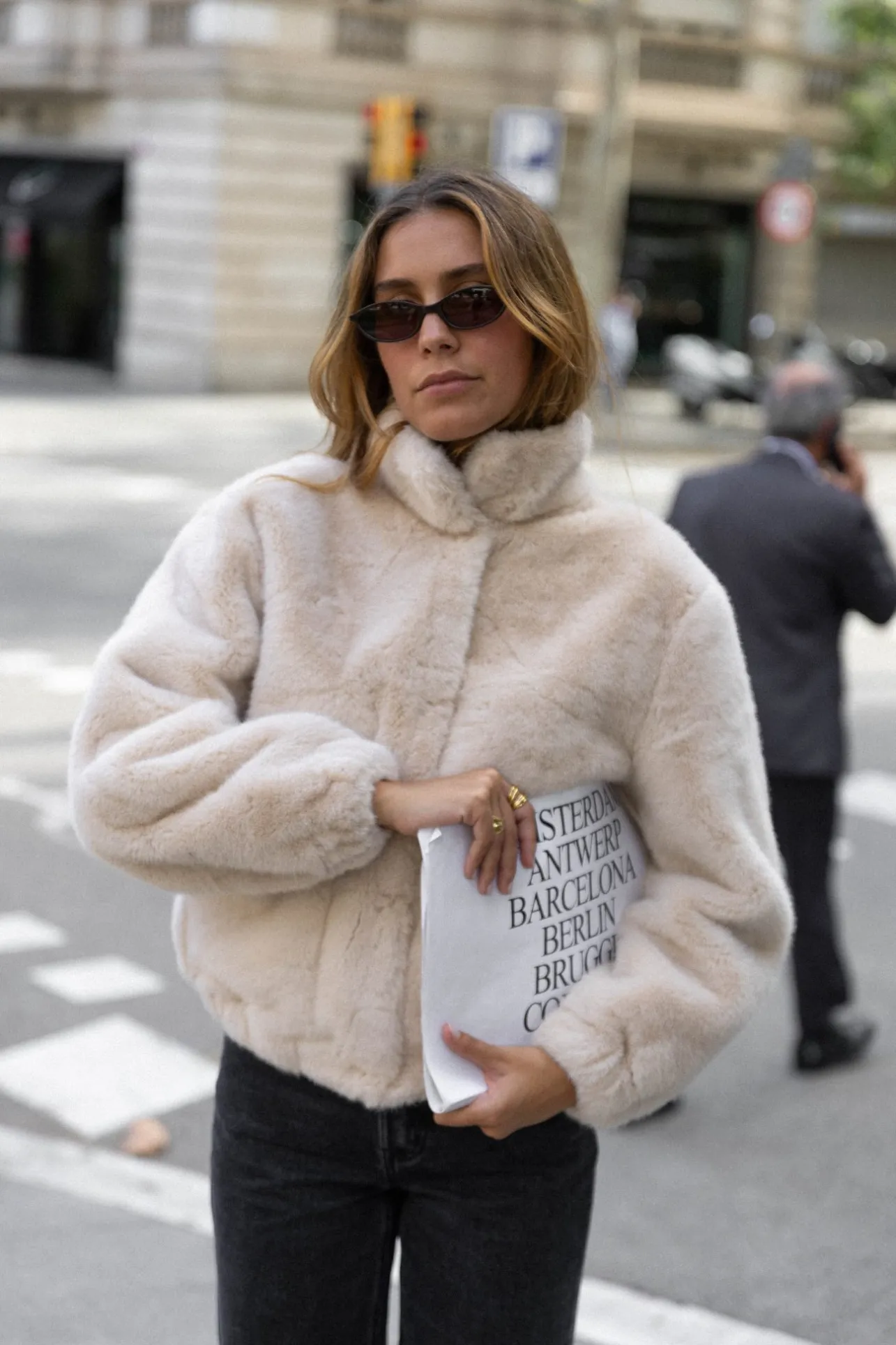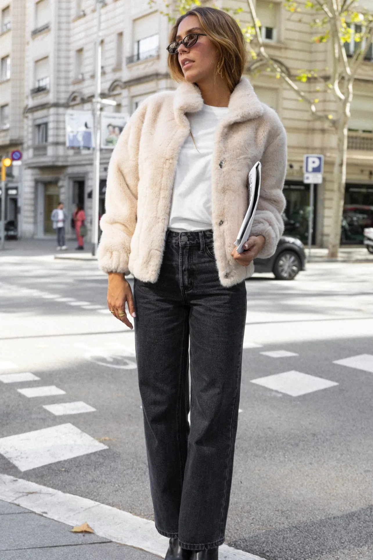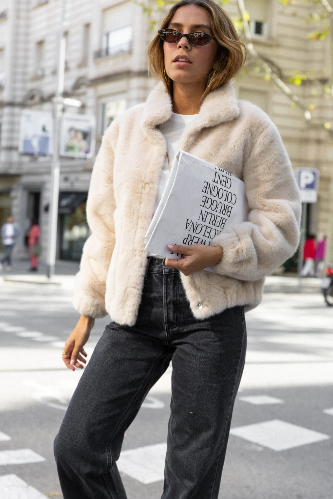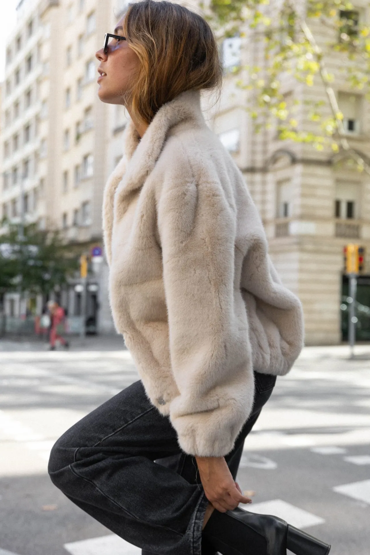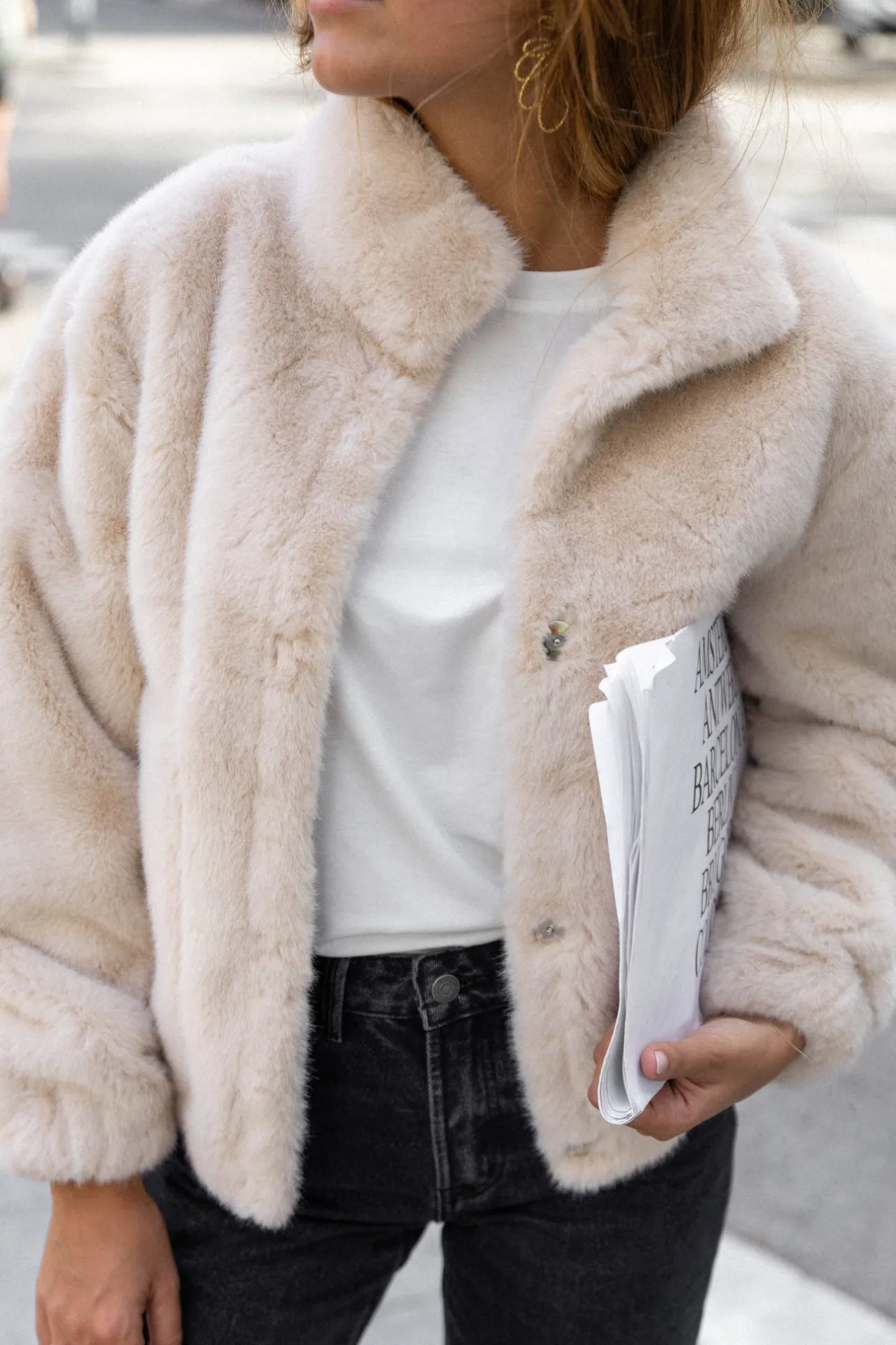 – Manteau court effet fourrure