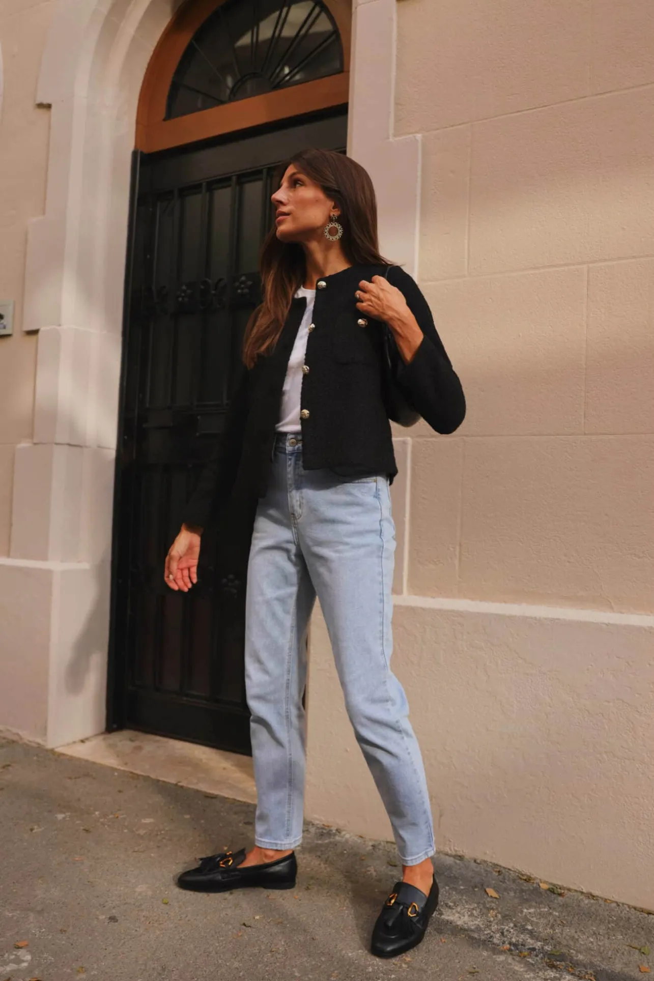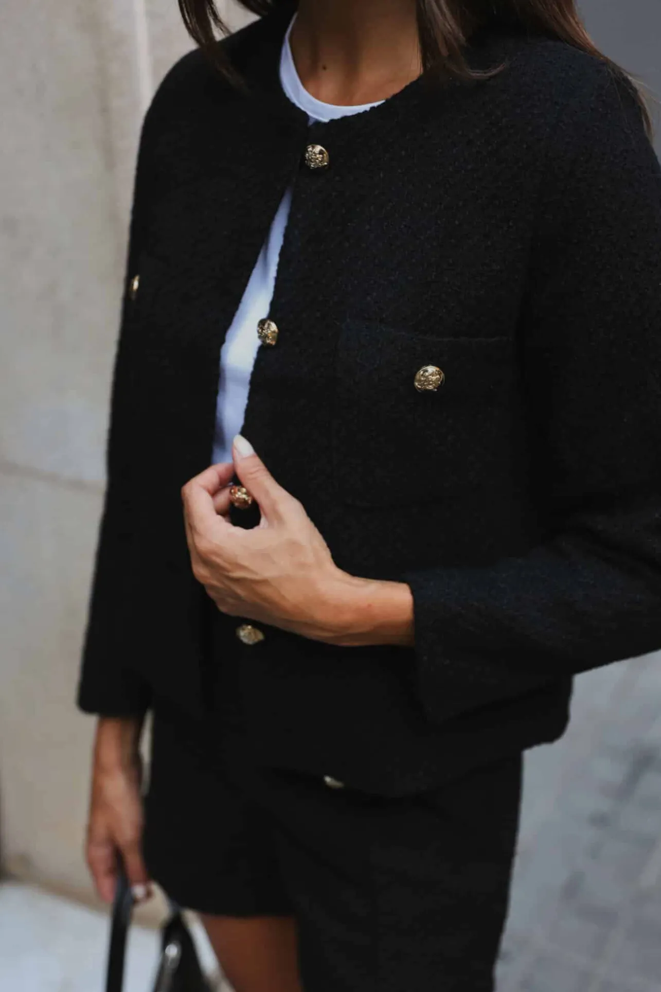 – Veste tweed– Fermeture par boutons dorés– Deux poches à l’avant– Doublée– Fines…