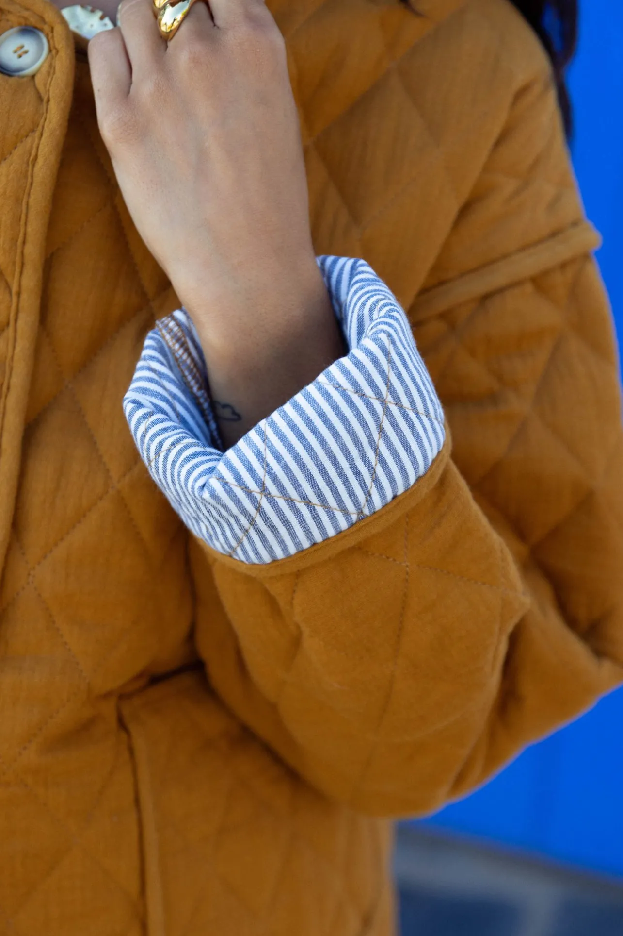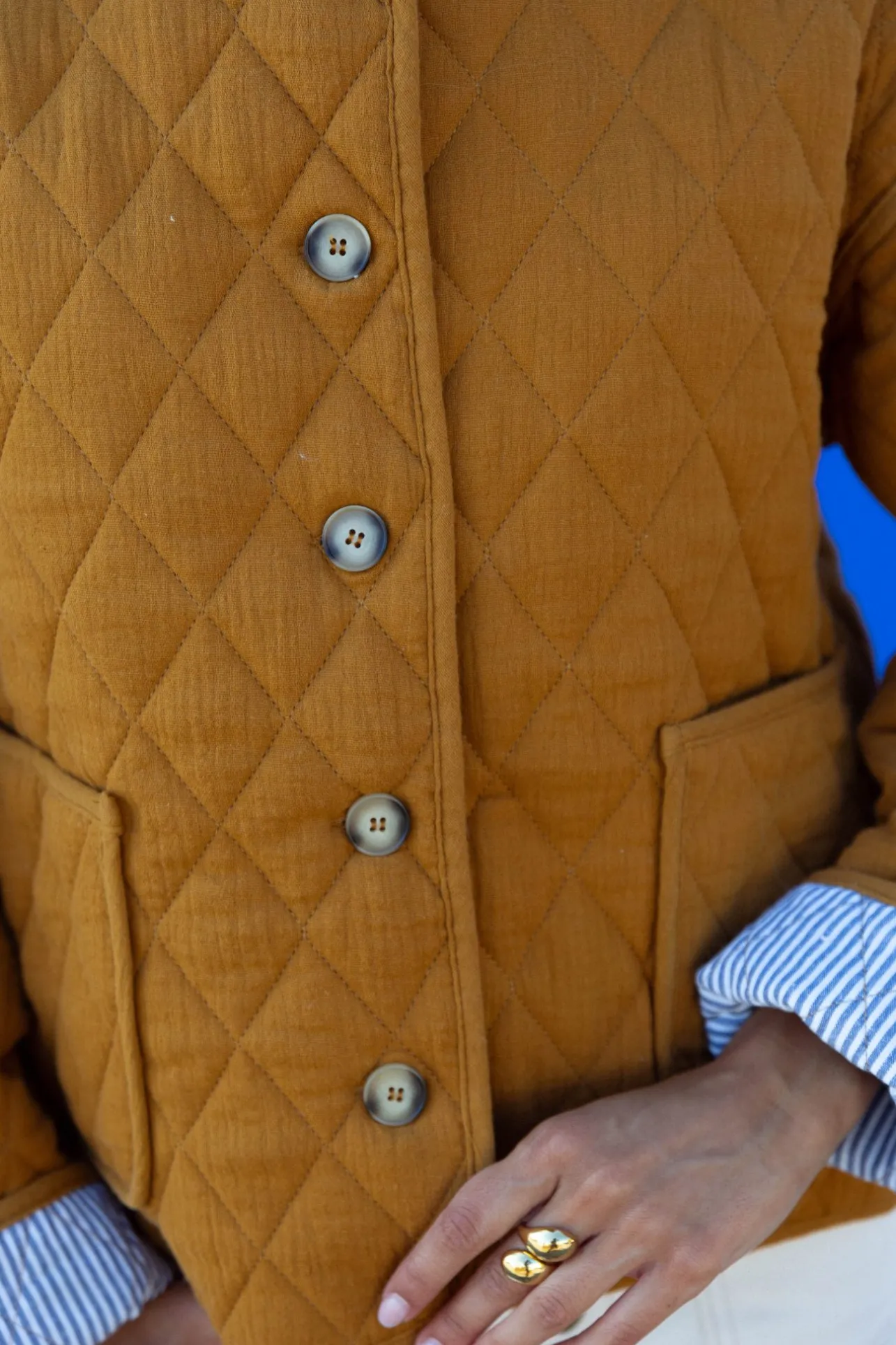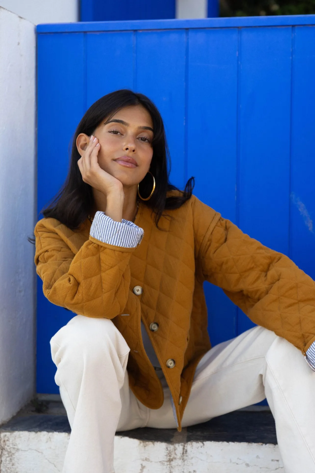 – Veste matelassée– Fermeture par boutons à l’avant– Deux poches à l’avant– Couleur : ocreLe mannequin me…