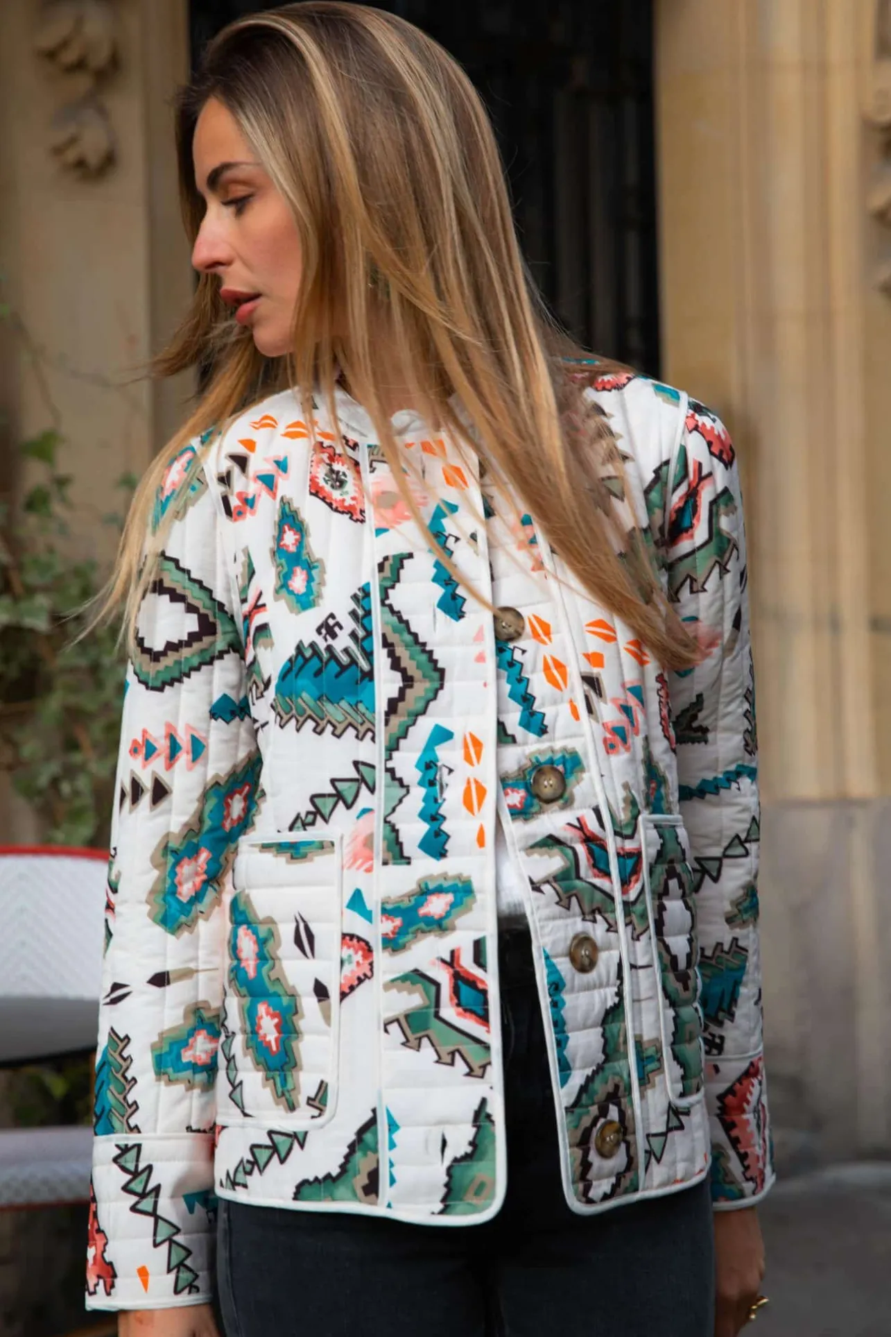 – Veste à imprimé– Manches longues– Coupe droite– Fermeture par boutons à l’avant–…