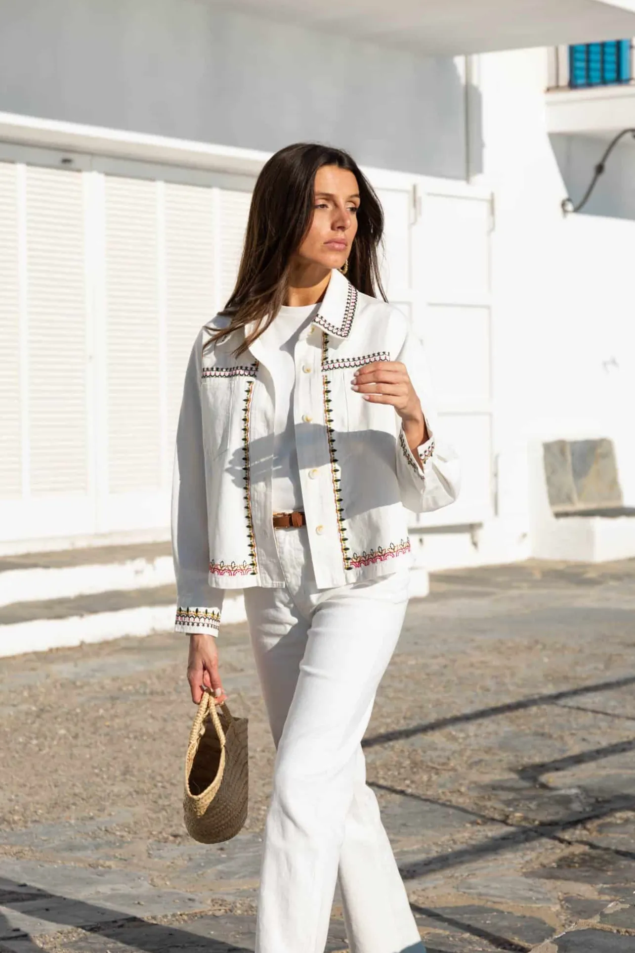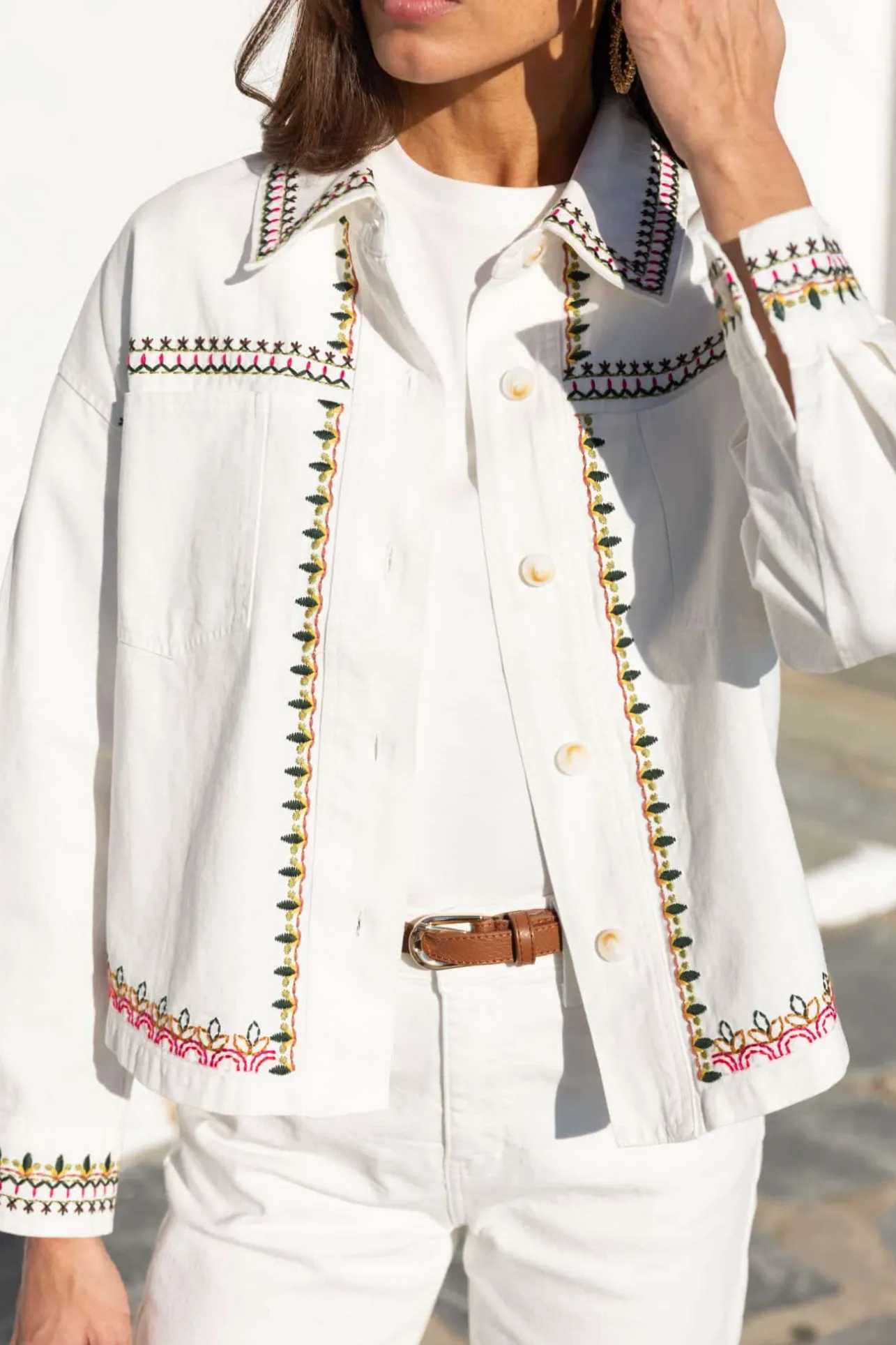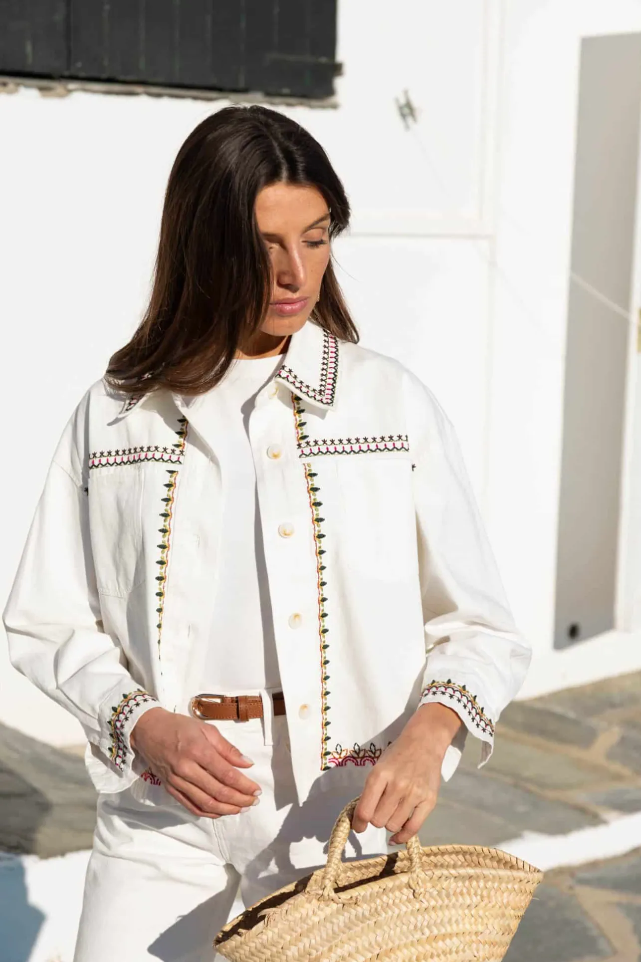 – Veste en jean– Coupe droite– Deux poches à l’avant– Broderies colorées– Couleur …