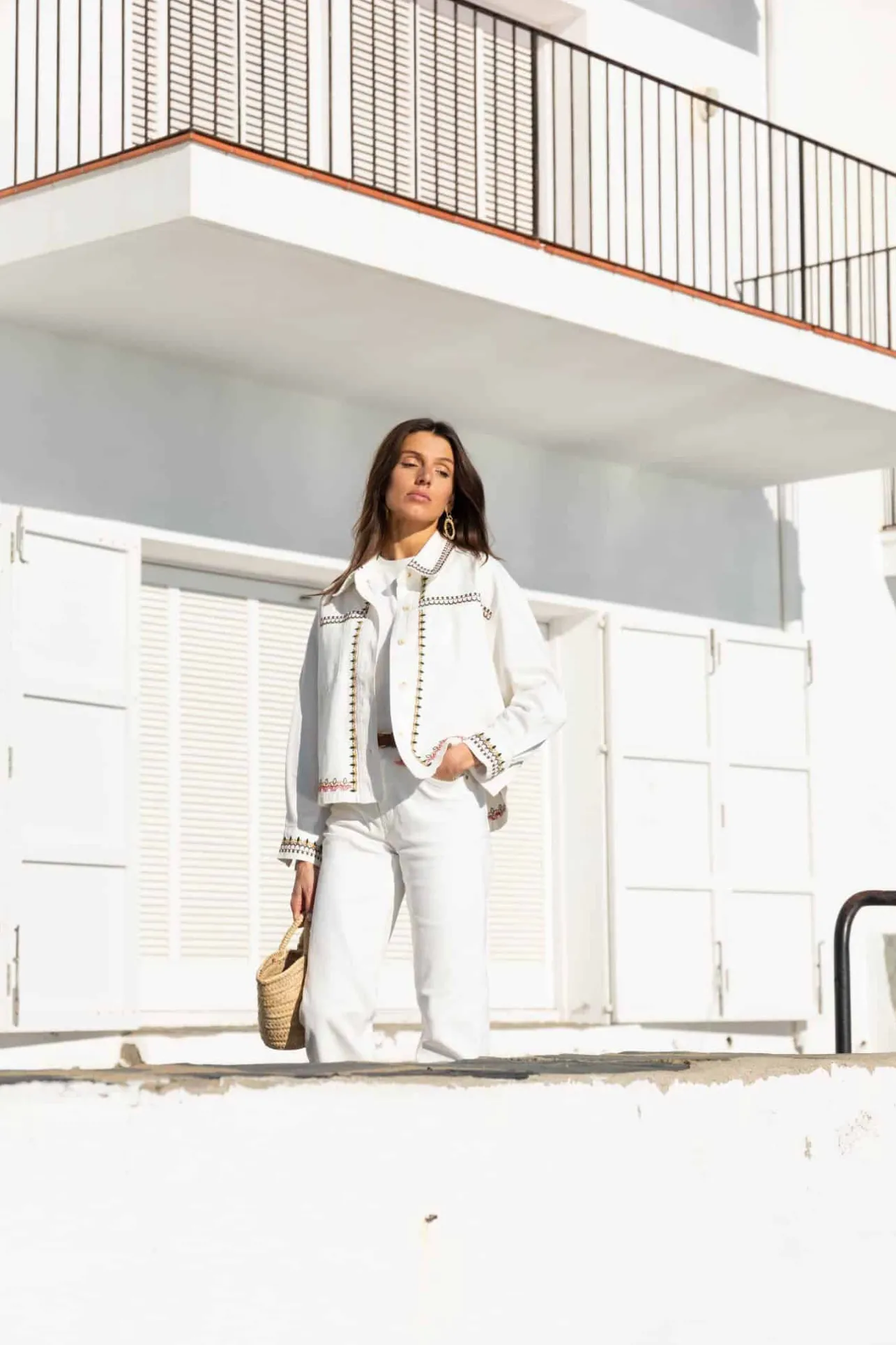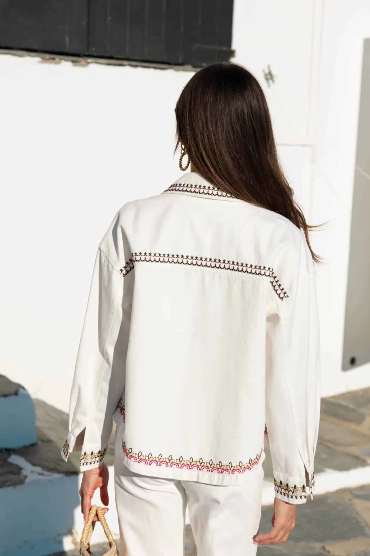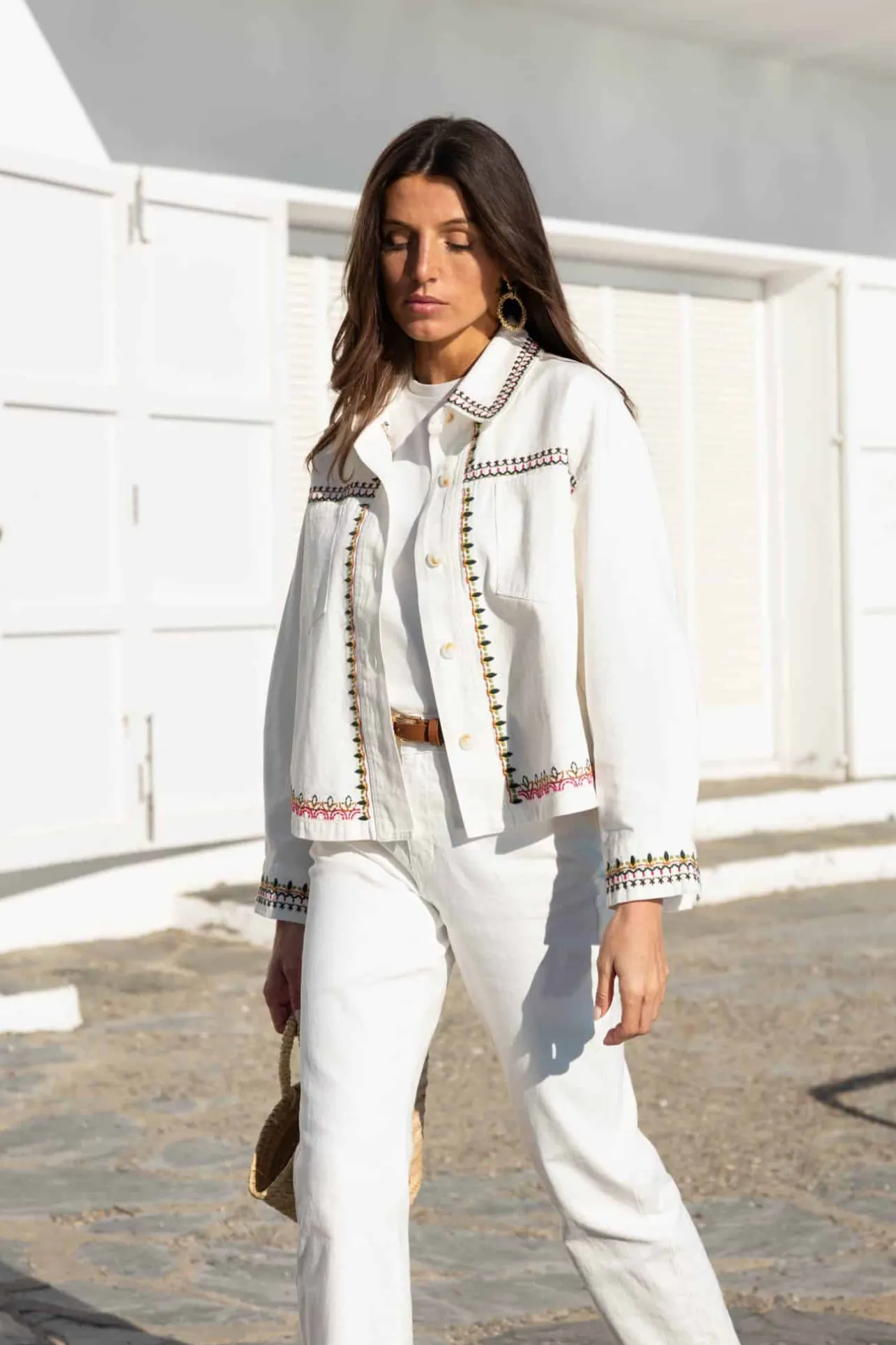 – Veste en jean– Coupe droite– Deux poches à l’avant– Broderies colorées– Couleur …